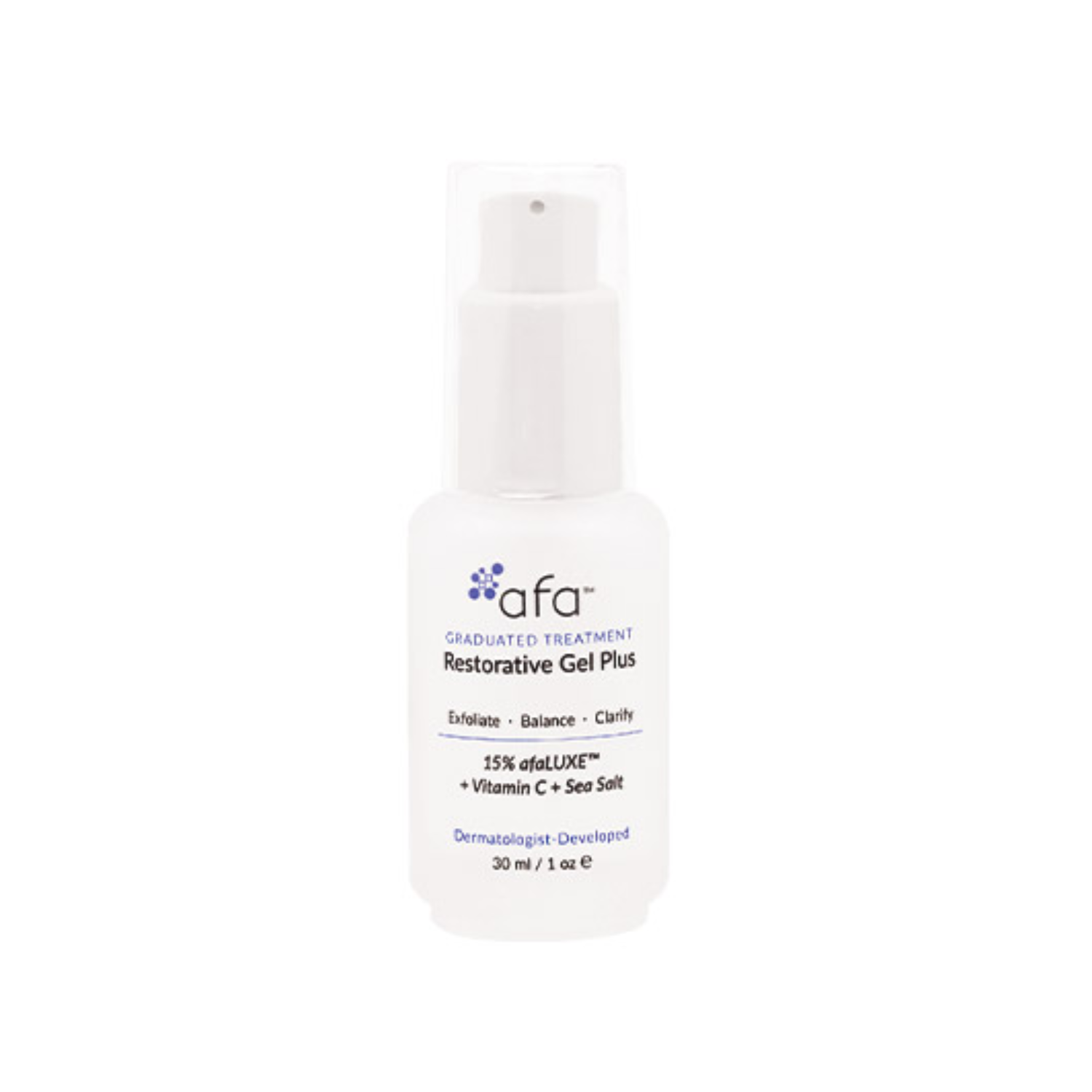 When starting afa Restorative Gels, begin with either Acne Care or Gel Mild, as they are formulated with the lowest concentrations of highly potent afaLUXE™ and will allow skin to acclimate to daily use. After cleansing, dispense no more than a dime-size amount of gel onto hands. Rub hands together to evenly distribute. Then, apply to the entire face. When using this product for the first time, apply it, and leave it on for two hours. Then, rinse. If no irritation occurs within 24 hours, future applications may be left on overnight. Discontinue use if irritation occurs. Do not spot treat, as that may cause irritation.