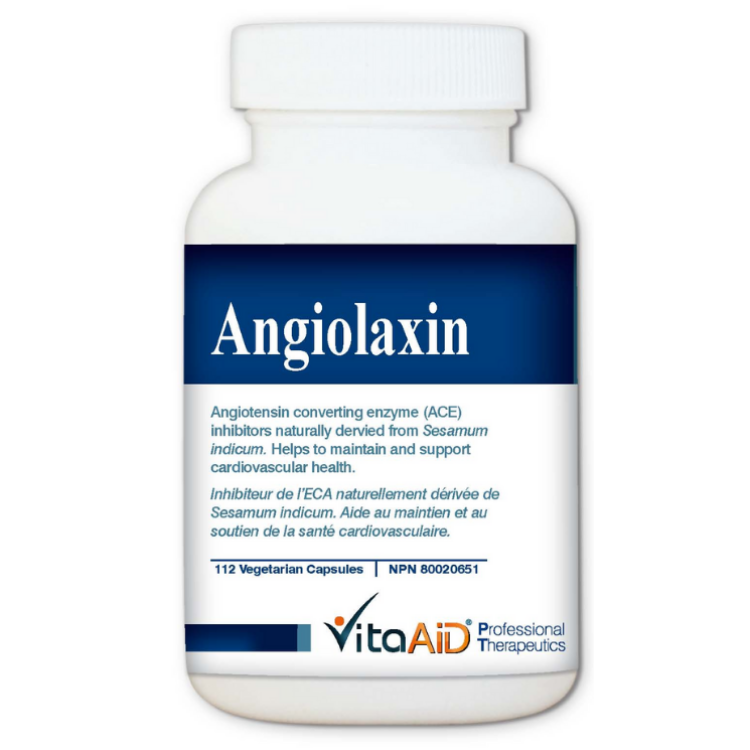 Angiolaxin contains angiotension converting enzyme (ACE) inhibitors naturally derived from Sesamum indicum and coenzyme Q10 to help maintain and/or support cardiovascular health.