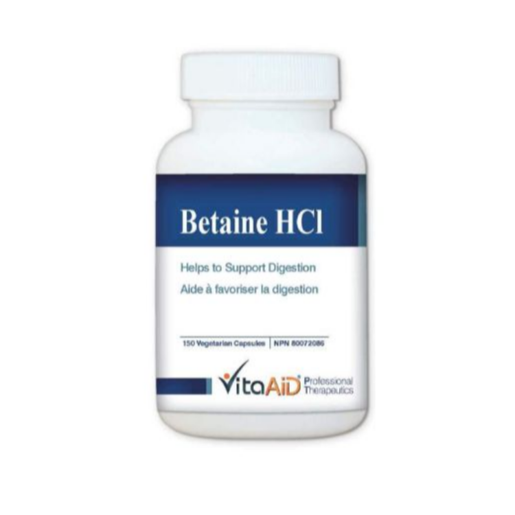 Betaine HCl is a source hydrochloric acid to aid in the digestion of protein in the stomach.