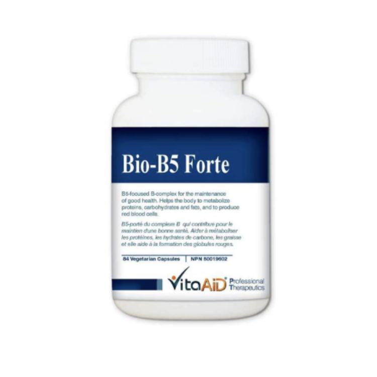 Bio-B5 Forte is a vitamin B5-focused B vitamin complex for the maintenance of good health. The B vitamins work together to help the body metabolize proteins, carbohydrates and fats and to produce red blood cells.