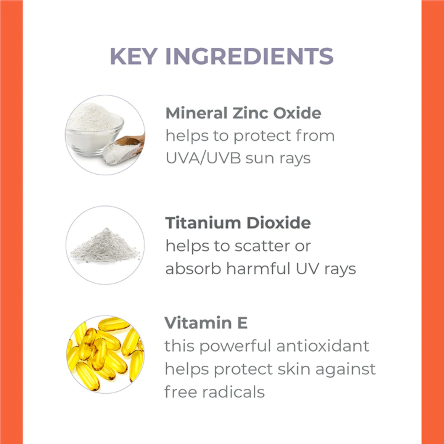 Active Ingredients: Titanium Dioxide – 3.4% Zinc Oxide – 15.7%