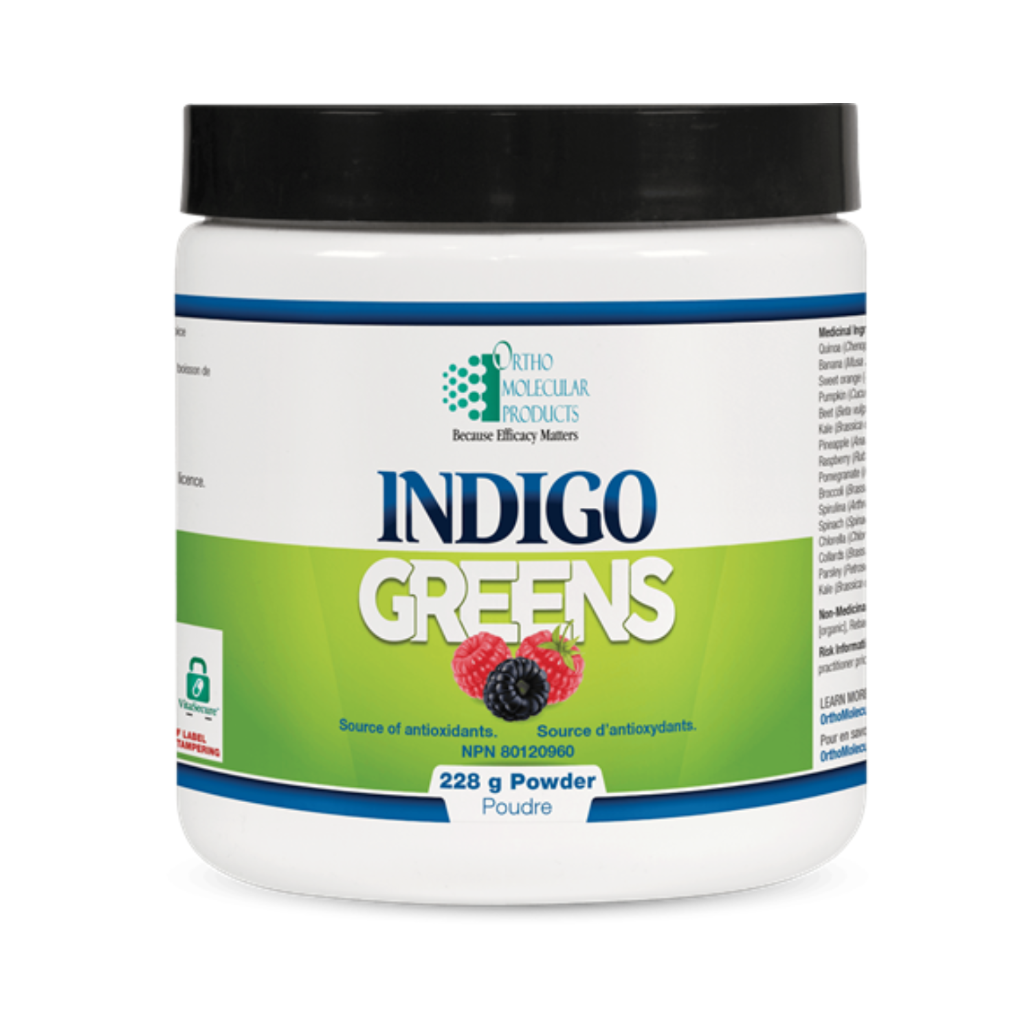 Health Canada recommends the regular intake of nutritious foods, including vegetables and fruit, that are commonly found in patterns of eating linked with beneficial effects on health. According to a long-term study of health trends in Canada, vegetable and fruit intakes are consistently low. Indigo Greens provides a blend of organic fruits and greens paired with a wide variety of organic vegetable powders to help bridge the gap in the typical Canadian diet. Indigo Greens can be taken as a standalone beverage mixed in juice or water, or used in a comprehensive fruit and vegetable smoothie to give an added boost of phytonutrients from organic fruits and vegetables.