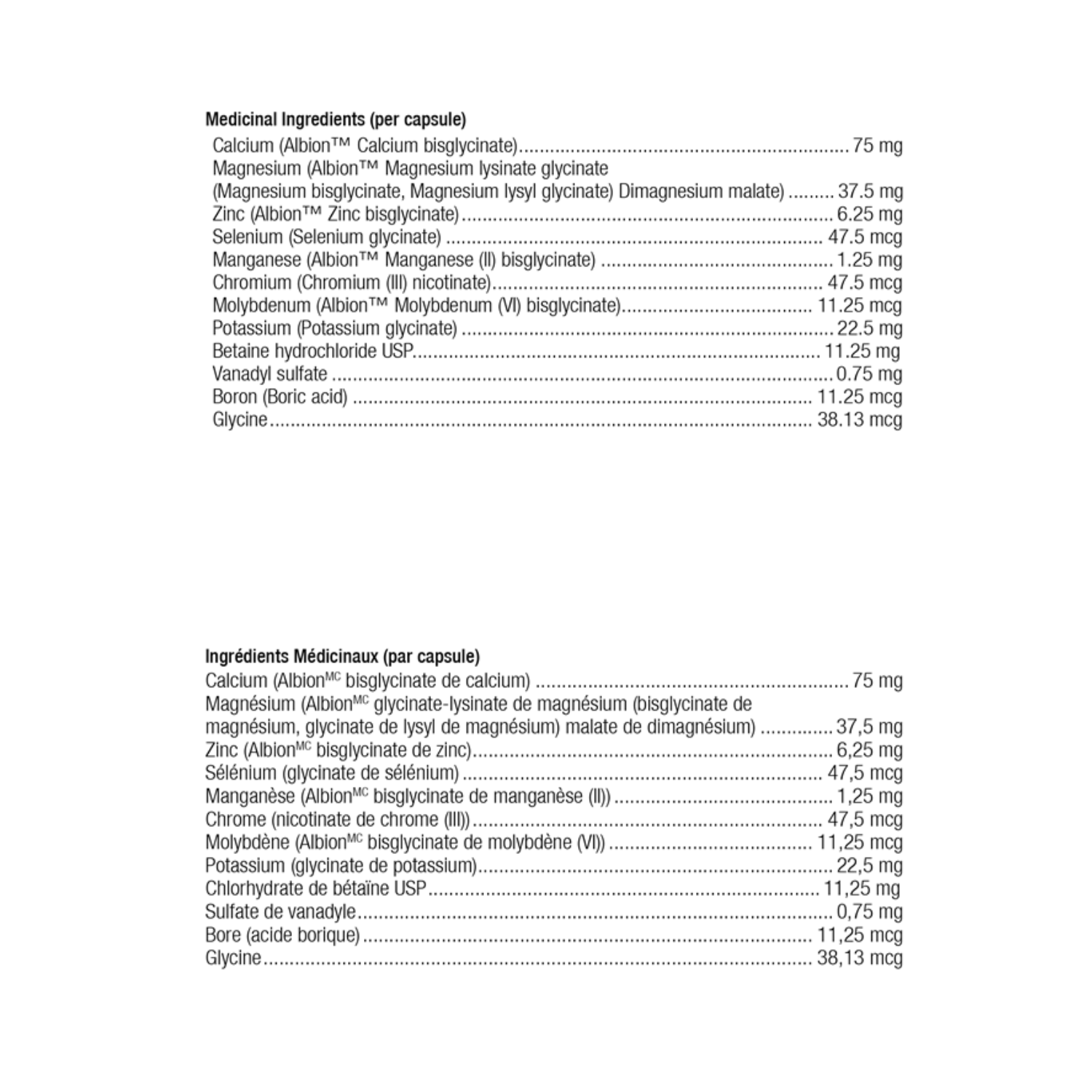 Zinc (TRAACS® Zinc Bisglycinate) ……………………………………..6.25 mg