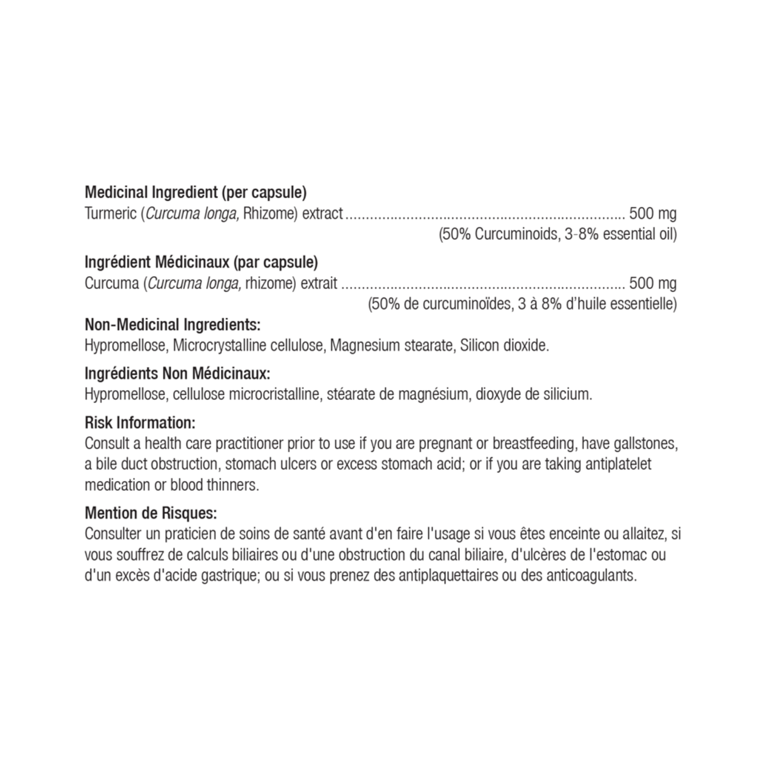 (Standardized to contain 45-55% Curcuminoids, 3-8% Volatile Oil, 2-6% Turmerin)