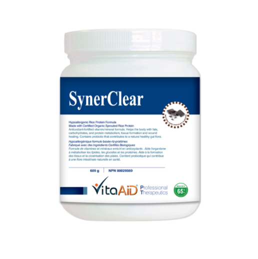 SynerClear is an antioxidant-fortified, rice-protein-based formula which contains nutritents to help the body metabolize fats, carbohydrates, and proteins; to help in tissue formation and wound healing; to aid in the maintenance of immune function and good health.