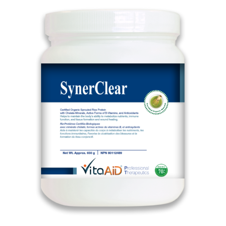SynerClear is an antioxidant-fortified, rice-protein-based formula which contains nutritents to help the body metabolize fats, carbohydrates, and proteins; to help in tissue formation and wound healing; to aid in the maintenance of immune function and good health.
