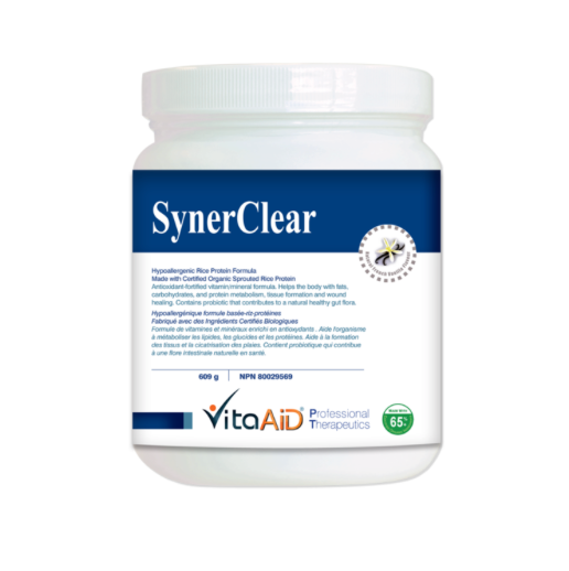 SynerClear is an antioxidant-fortified, rice-protein-based formula which contains nutritents to help the body metabolize fats, carbohydrates, and proteins; to help in tissue formation and wound healing; to aid in the maintenance of immune function and good health.