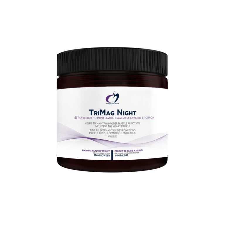 TriMag Night is a unique blend of three highly absorbable forms of magnesium along with relaxation-supportive botanicals. One serving provides 300 mg of elemental magnesium in an easy-to-mix powder. TriMag Night has a delicious lavender and lemon flavour, and it is sweetened with stevia.